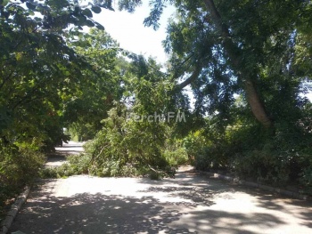 На Петра Алексеева рядом с керчанами упало огромное дерево. По словам очевидцев, дерево несколько дней «трещало», прежде чем обломиться и упасть, - передает Керчь.ФМ.