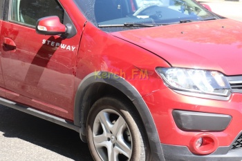 Пострадавшего человека увезла скорая помощь. На месте работают сотрудники полиции. У автомобиля Рено присутствуют характерные повреждения правого переднего крыла.