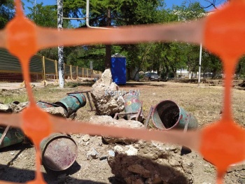 В Керчи на Бульваре Пионеров 9 июля продолжается реконструкция. С пешеходных дорожек сняли плитку. На месте работает спецтехника, - передает Керчь.ФМ.