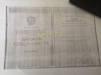 Возможно, копия диплома, которую в редакцию прислали постоянные читатели, никакого отношения к исполняющему обязанности директора ККБ, заместителю директора МУП МОГОК «ЖилсервисКерчь» Гусарову Денису Михайловичу, не имеет. Поэтому, заранее просим не связывать диплом Инженера Гусарова Д.М/ серии 106124 0689588 с руководителем керченского МУПа. Это компетенция правоохранительных органов, а также администрации города Керчи, которая доверила специалисту возглавлять предприятие, связанное с безопасностью проживания керчан, экологией и здоровьем.