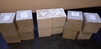 Далее идет детальный отбор бетонной смеси, которая формируется в стандартные кубики на специальной виброплощадке.
