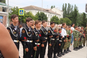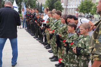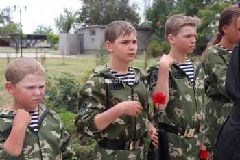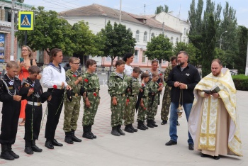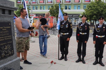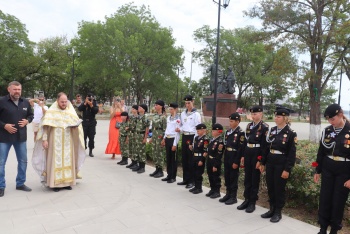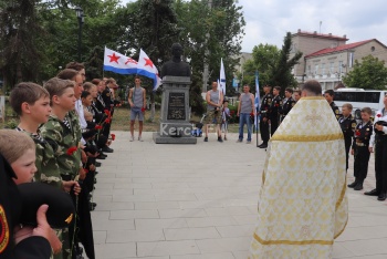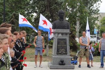 В это время в сквере у морвокзала прошел молебен у бюста адмирала Ушакова. Организации подростков в милитари-форме стояли в почетном карауле.