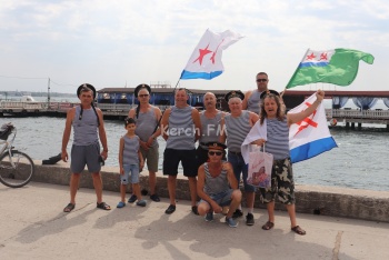 В Керчи пытаются сами отметить день ВМФ. Традиционно, в этот день собираются ветераны-моряки, те, кто проходил срочную службу на кораблях военно-морского флота, спускают венок на воду и буй, но не в этом году. Сегодня несколько самых активных пришли в тельняшках и бескозырках с флагами к водной станции и сами спустили венок на воду, затем, пройдясь своей компанией по Набережной, разошлись, - передает Керчь.ФМ.