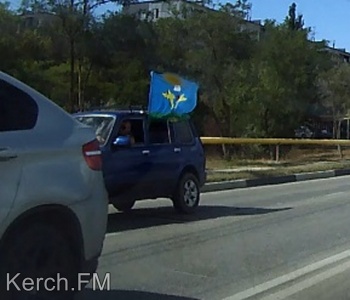 Также на дорогах некоторые автомобили двигаются с флагами Воздушно-десантных войск.