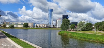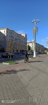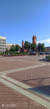 Минск прежде всего, поразил своей грандиозной архитектурой, огромные тротуары, широкие улицы и проспекты. Прохожие посоветовали пройтись по центру и сходить в музей великой отечественной войны, что мы с Анатолием и решили сделать. Мы вышли в центр города на огромную площадь, где себя чувствуешь лилипутом, все вокруг просто огроменное. По дороге, я купил газету с местными новостями и узнал, что в Беларуси скоро выборы, часть кандидатов в президенты или недопущены или сидят под следствием, из-за незадекларированных доходов, имущества и т.д скрытых при подаче заявки на выборы. Причем в Беларуси так и остались все те же названия, что и при СССР, КГБ, милиция. Причем я думаю белорусам забавно читать русские названия и наоборот русским белоруские, т. к у них милиция - это мiлiцыя, выборы-выбАры и так во всем языке, все вроде и похоже и не похоже на русский или украинский языки. Сам очень чистый, в парках есть туалеты, люди очень приветливые и доброжелательные.