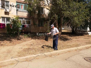 Пока журналисты по просьбе местных жителей делали репортаж, к нависшему проводу подошел пожилой мужчина, увидел его и стал наматывать на руку, потом попросил кусок шнурка или проволоки, чтобы перевязать кабель и закрепил уже моток на дереве. Потом без слов пошел дальше по своим делам: в руках была авоська для продуктов.