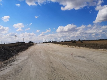 На сегодняшний день там не то, чтобы дорога сделана, а в трех местах нетронутые участки - дороги нет до сих пор вообще. Есть подсыпанное направление в границах будущей дороги, частично уложены трубы и на совсем маленьким участке подсыпан щебень. На всем участке несколько человек и маленький экскаватор трудились в районе улицы Литейная - это небольшой хутор из 5 домов на нескольких улицах (это часть города Керчь), находится за бывшим азовским заводом стройматериалов.