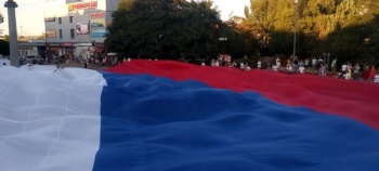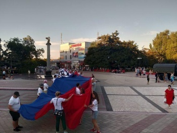 «Почтив память павших в боях за освобождение города Керчи в период Великой Отечественной войны возложением цветов к Вечному огню в сквере Славы, участники проекта развернули на центральной площади города полотнище флага Российской Федерации», - рассказали в администрации