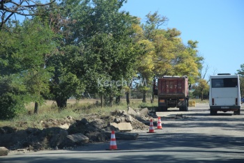 В Аджимушкае уже заасфальтировали главную улицу в один слой.