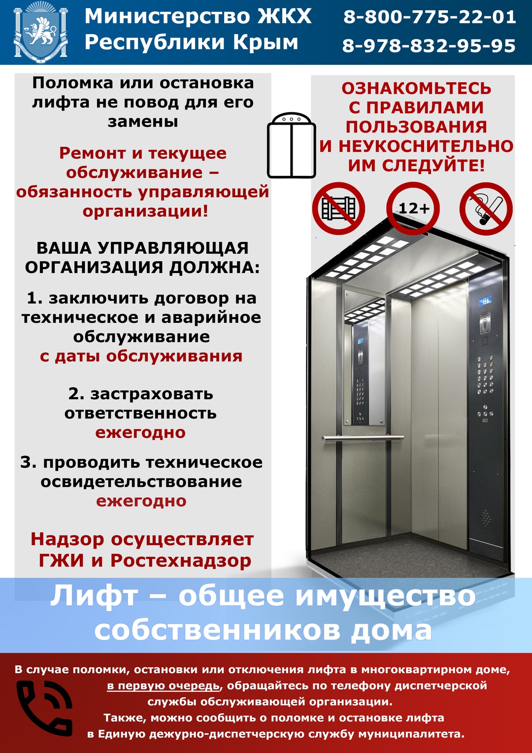 Министерством жилищно-коммунального хозяйства Республики Крым разработана памятка для жителей многоквартирных домов, в которых установлено лифтовое оборудование.Соответствующая инфомрациЯ размещена на сайте ведомства, - передает Керчь.ФМ.