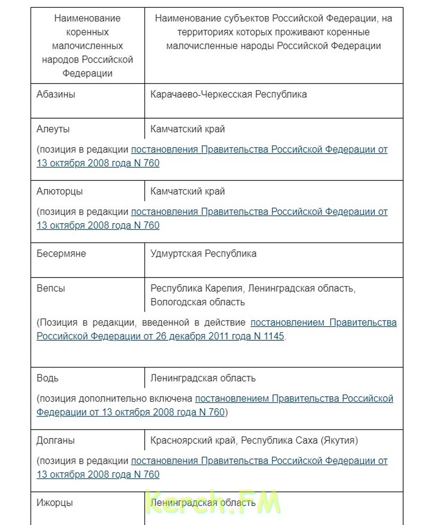 В России появится единый список граждан, относящихся к коренным малочисленным народам. Постановление о правилах его ведения подписал Председатель Правительства Михаил Мишустин. Соответствующая информация размещена на сайте Правительства России, - передает Керчь.ФМ.