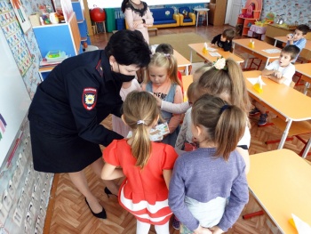 Вместе с инспектором дошколята вспомнили основные правила дорожной безопасности, порядок пересечения проезжей части, разобрали основные знаки дорожного движения.