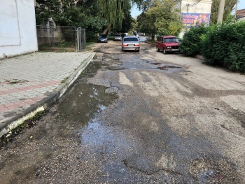 С утра улица Орджоникидзе в Керчи залита чистой водой