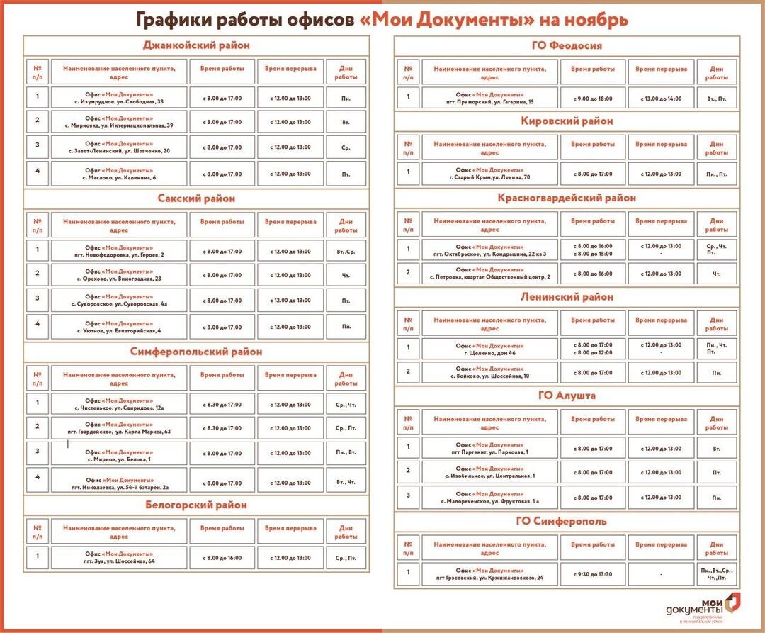 Офисы «Мои Документы», в которых существует максимальная востребованность жителей Крыма, начинают работать строго по предварительной записи с 1 ноября 2020 года.