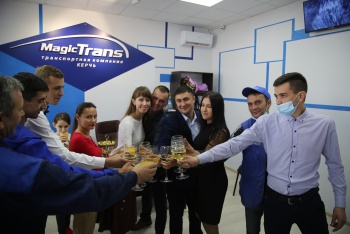 В честь открытия прошел небольшой фуршет, на которого пришли партнеры и друзья компании. Повезло и первым клиентам нового офиса - они уходили с презентами от транспортной компании «Magic Trans»