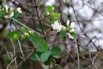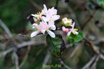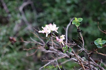 В Керченской степи зацвела жимолость. В районе крепости «Керчь» в закрытых от ветра местах перепутал весну и позднюю осень терн. Природа продолжает дарить свои цветные подарки.