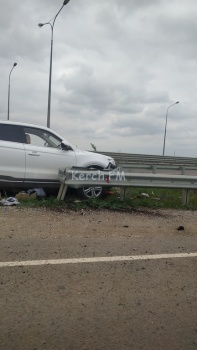 На автоподходах к Крымскому мосту 10 ноября произошла авария. Водитель кроссовера не справился с управлением и врезался в ограждение. Как сообщают очевидцы в соцсетях, ДТП произошло около Керчи.