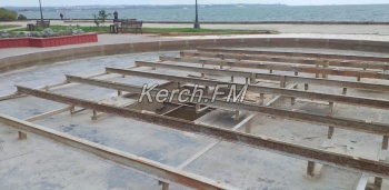 В Керчи на городской набережной от фонтана остались лишь воспоминания - на ограждённом месте находятся железные перекладины и торчащие кабели. Об этом Керчь.ФМ сообщили постоянные читатели.