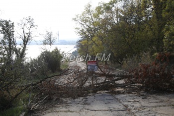 Также здесь убрали бетонный блок для въезда спецтехники со стороны ул. Первых космонавтов на Прибрежный спуск. Но дальше нельзя даже пройти - здесь сделали заграждение из веток.