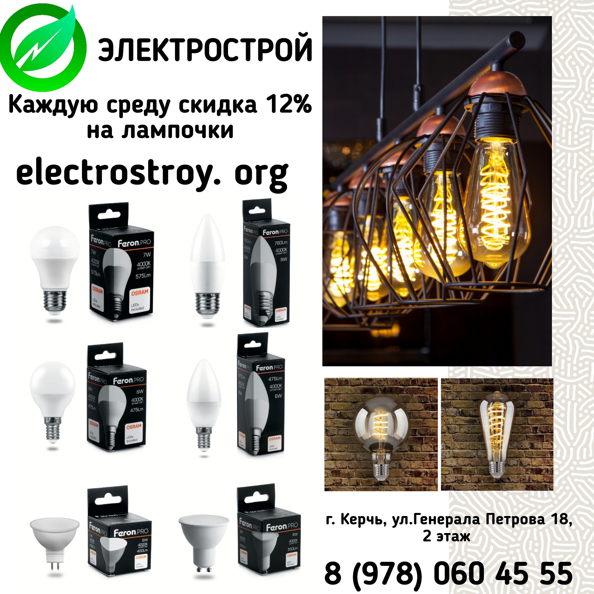 Магазин «Электрострой» - скидка 12 % каждую среду  на лампочки!