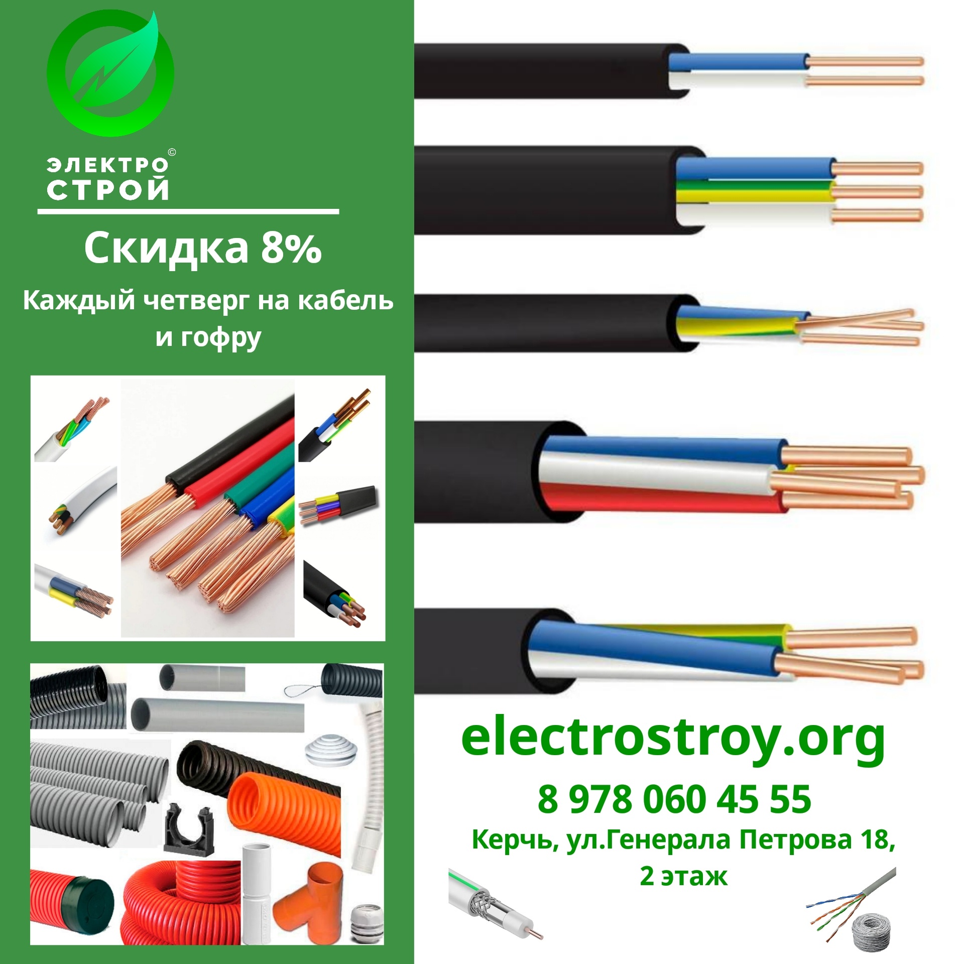 Магазин «Электрострой» - скидка 8 % каждый четверг на кабель и гофру!