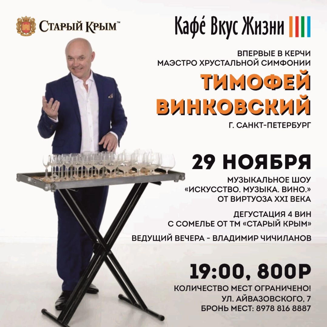 Впервые в Керчи артист оригинального жанра, маэстро хрустальных симфоний — Тимофей Винковский.