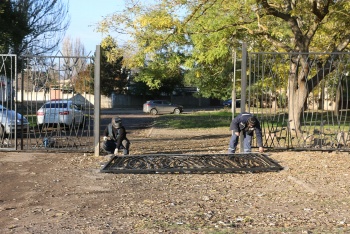 Также ведется установка нового ограждения по периметру территории стадиона.