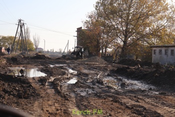 Журналисты Керчь.ФМ при очередном посещении стройплощадки отметили, что на этот раз на объекте были люди и они работали в районе 10 школы. Из-за полного отсутствия дублирующей дороги проехать дальше было невозможно. Но и так видно, что до 100% готовности еще как до Киева пешком.