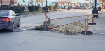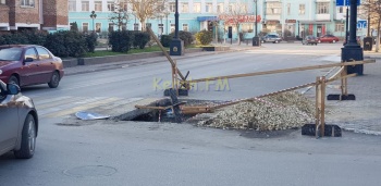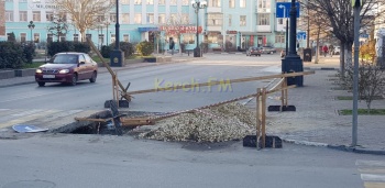 Ограждение ямы на Карла Маркса в Керчи сломали: керчане, будьте осторожны