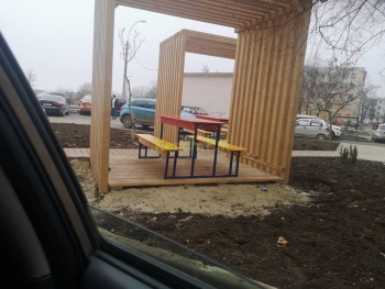 Керчане удивлены тем, что в благоустроенных дворах в Аршинцево по ул.Дейкало установили беседки и на деревянные настилы. Часть навесов, установленные на мощеные дорожной плиткой тротуары, другие на специальное спортивное покрытие, но часть зоны благоустройства покрыта деревянными настилами, — передает Керчь.ФМ.