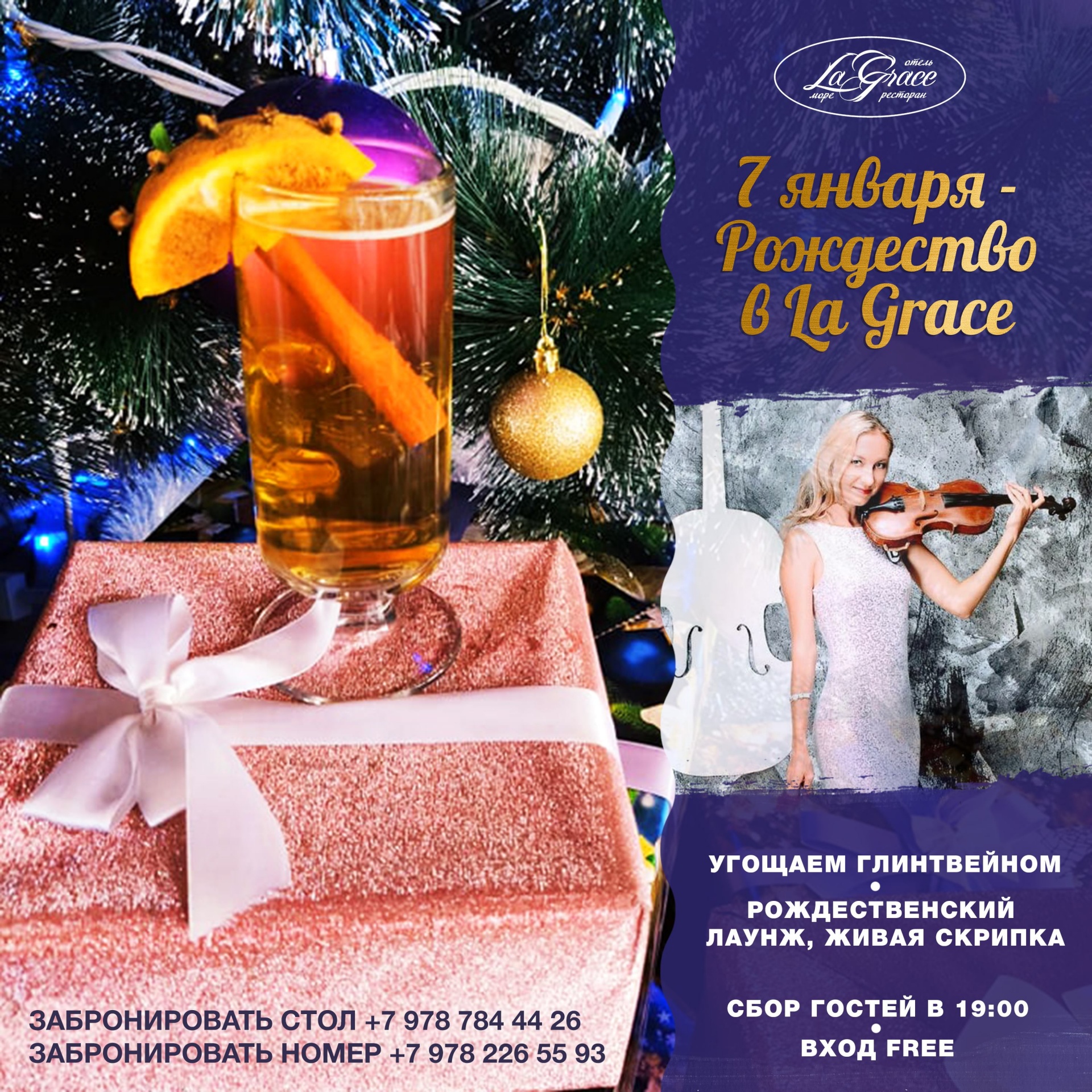 7 января в La Grace, мы словно герои рождественской сказки, под звуки живой скрипки будем вместе наблюдать, как зимний закат, словно художник взяв в руки краски, распишет перед нами вечернее небо над Казантипским заливом... Встречаем всех гостей пряным согревающим глинтвейном, влюбляемся вместе в Крымский закат под рождественский лаунж с 19:00 до 22:00.