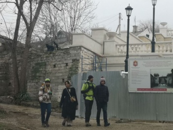Во-первых, раз объект сдан, то и забора там не должно быть. Возможно, забор просто забыли демонтировать и юридически преград для того, чтобы жители улицы Рыбакова спускались и поднимались к себе домой безопасно, и никакого нарушения не будет, если они просто откроют ворота и будут там ходить. Ведь в первую очередь лестницу делали для керчан, а не для торжественного перерезания ленточки и пламенных речей. В конце концов довели эту самую лестницу до такого плачевного состояния те же самые руководители города за долгое время.