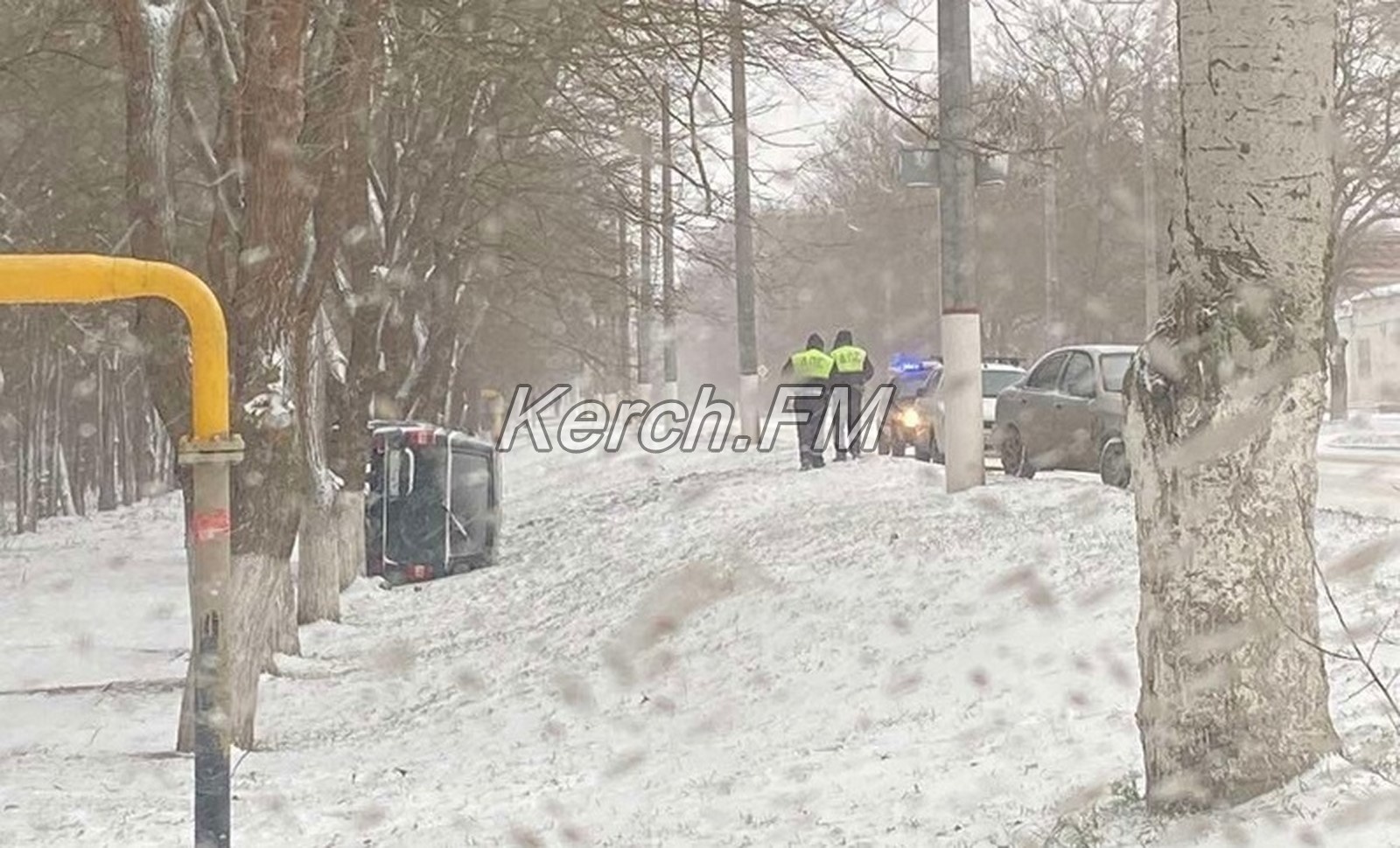 В Керчи утром 17 января на ул. Вокзальное шоссе внедорожник вылетел с дороги и перевернулся. Об этом Керчь.ФМ сообщили постоянные читатели.