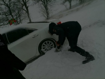 Днем 17 января, в 15.40 в службу спасения поступило сообщение о том, что в Ленинском районе на дороге между с. Аджимушкай-Бондаренково-Глазовка в снежных переметах застряли 19 автомобилей. Требовалась помощь спасателей. Об этом сообщает пресс-служба МЧС Крыма, - передает Керчь.ФМ.