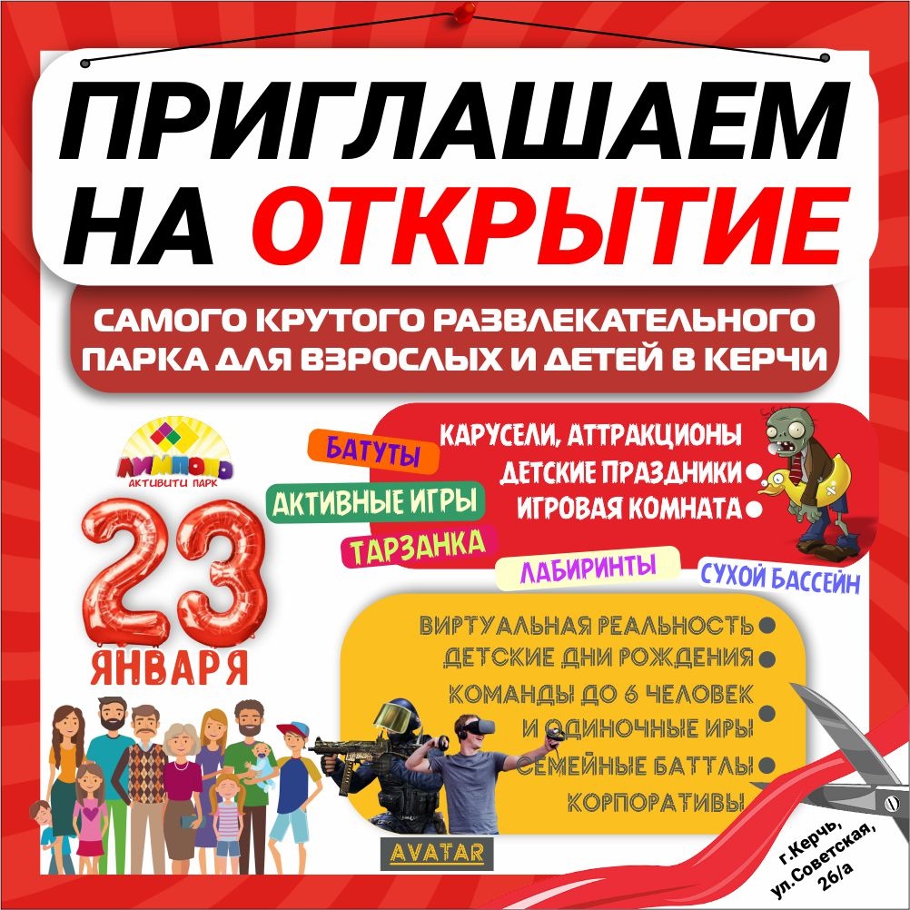 Друзья, рады сообщить, что Лимпопо Активити Парк и VR Battle Arena "Аватар" теперь и в Керчи! ?