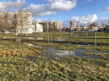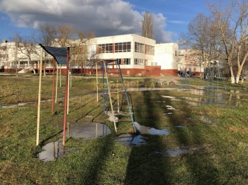 В Керчи на территории 23 школы произошел потоп. Чистой водой затоплен школьный стадион. Фотографии в редакцию Керчь.ФМ прислали родители учащихся.