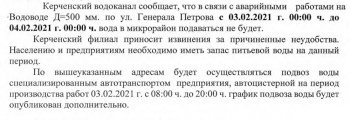 В среду, 3 февраля,  керчане от Промбазы до Стройгородка останутся без воды. Это связано с ремонтными работами, - передает Керчь.ФМ.