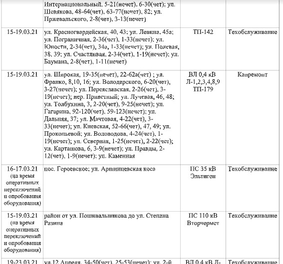 В связи с плановым ремонтом электрооборудования в марте в период с 8 до 17 часов будут происходить отключения линий электропередачи согласно нижеприведенному графику. Об этом сообщает ГУП РК «Крымэнерго», - передает Керчь.ФМ.