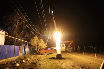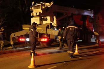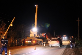 Бригада Керченского РЭС незамедлительно приступила к устранению аварии на линии электропередач. На место прибыли 6 единиц техники, несколько аварийных бригад. От генератора на время проведения работ подключили световой столб.