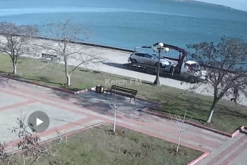В Керчи 14 февраля утонувшую машину на набережной достали из воды. Как Керчь.ФМ сообщили очевидцы, сначала дно обследовал водолаз. Потом с помощью манипулятора автомобиль достали из моря.