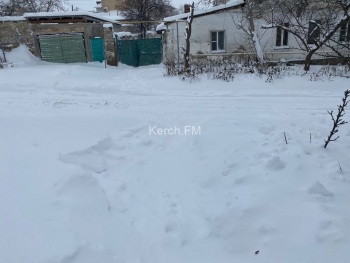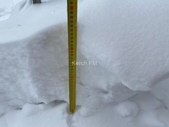 Журналист Керчь.ФМ взял рулетку и решил посмотреть, сколько снега выпало около его дома. Итак, на крыше навеса 31 см, около входа во двор - 42 см.