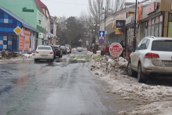 В Керчи на перекрестках и кольцах оставили кучи снега