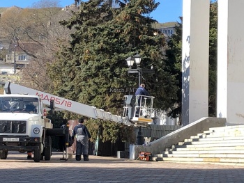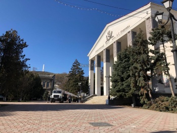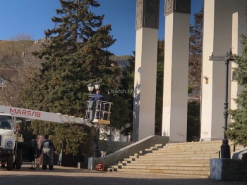 В Керчи 4 марта у театра им. Пушкина устанавливают новые плафоны фонарей. Работы производят с помощью автовышки,  - передает Керчь.ФМ.