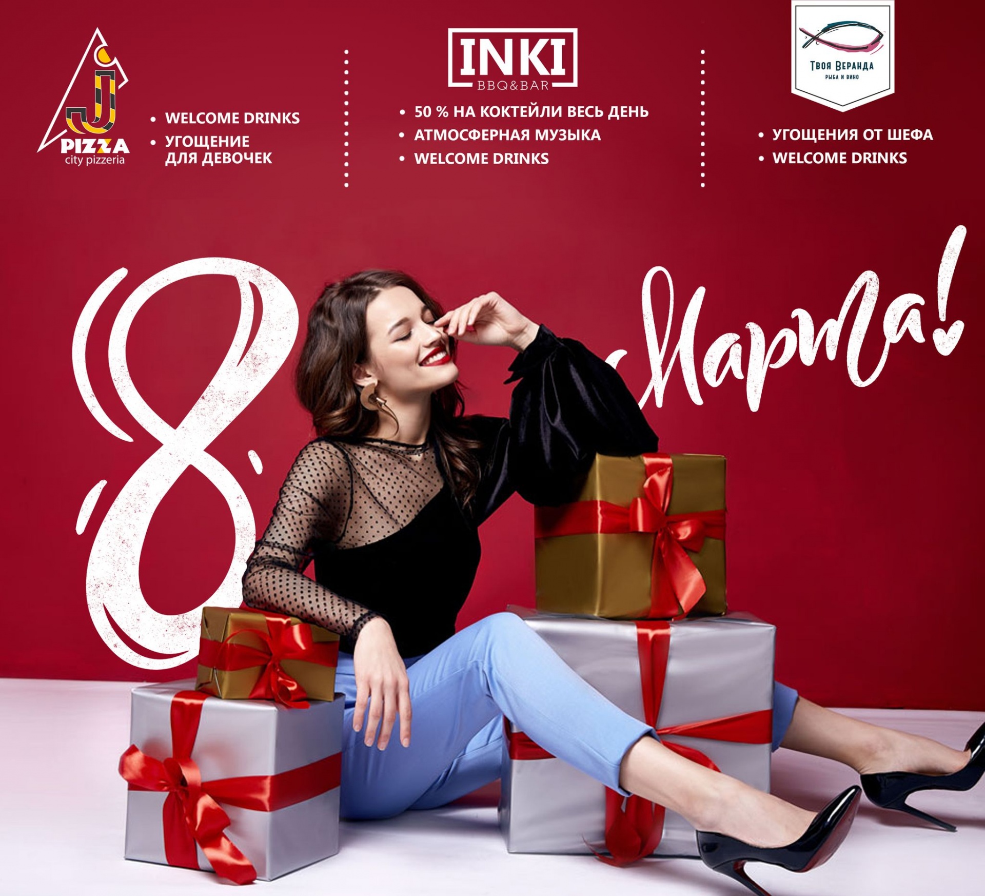 Семья вкусных ресторанов поздравляет всех прекрасных и замечательных женщин с Всемирным женским днём! Любимые, желаем Вам беречь себя и начинать свой каждый день с улыбки, прислушивайтесь к себе, ловите наслаждение в каждом деле которым занимаетесь, и не сомневайтесь - у Вас всё всегда получится!
