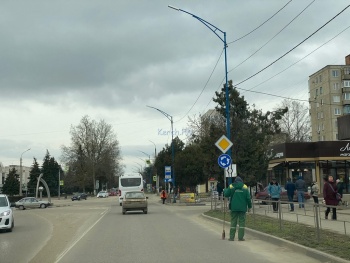 В Керчи 5 марта коммунальщики убирают обочины дорог. Они очищают дорогу на Шлагбаумской площади и улице Орджоникидзе. Все рабочие - в жилетах, - передает Керчь.ФМ