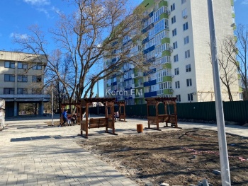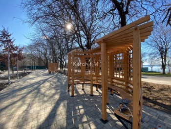 В Керчи у  Дворца Пионеров продолжается работа,  - передает  Керчь.ФМ. Установили новые лавочки, несколько беседок и декоративные фигуры
