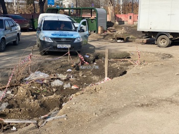 В Керчи уже почти месяц водоканал не может заасфальтировать яму. Напомним, что в феврале здесь произошел прорыв водопровод. Сотрудники предприятия устранили течь и после своих работ оставили огромную ямуи, - передает Керчь.ФМ.