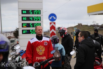 В Керчи утром 18 марта на автозаправке при выезде из города собрались мотоциклисты, автомобилисты и сотрудники ГИБДД. Люди приехали на автопробег в честь седьмой годовщины Крымской весны, - передает Керчь.ФМ.