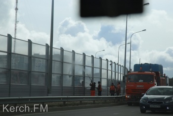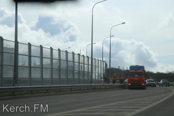 В Керчи на путепроводе по Шоссе Героев Сталинграда с понедельника идут работы. Здесь моют шумозащитные экраны, чистят обочины. Работы продолжаются ежедневно и не остановились даже в праздничный день.