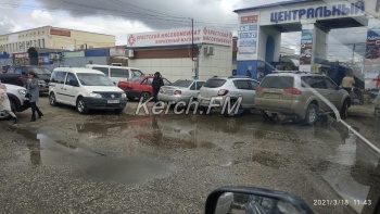 В Керчи у центрального рынка, на пересечении Козлова-Пролетарской течет канализация уже не первую неделю. Об этом  Керчь.ФМ сообщили постоянные читатели